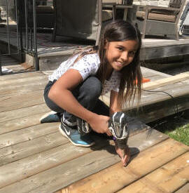 Heidi Helping with a Project an Evening at the Singh's Mia Helping with a Project