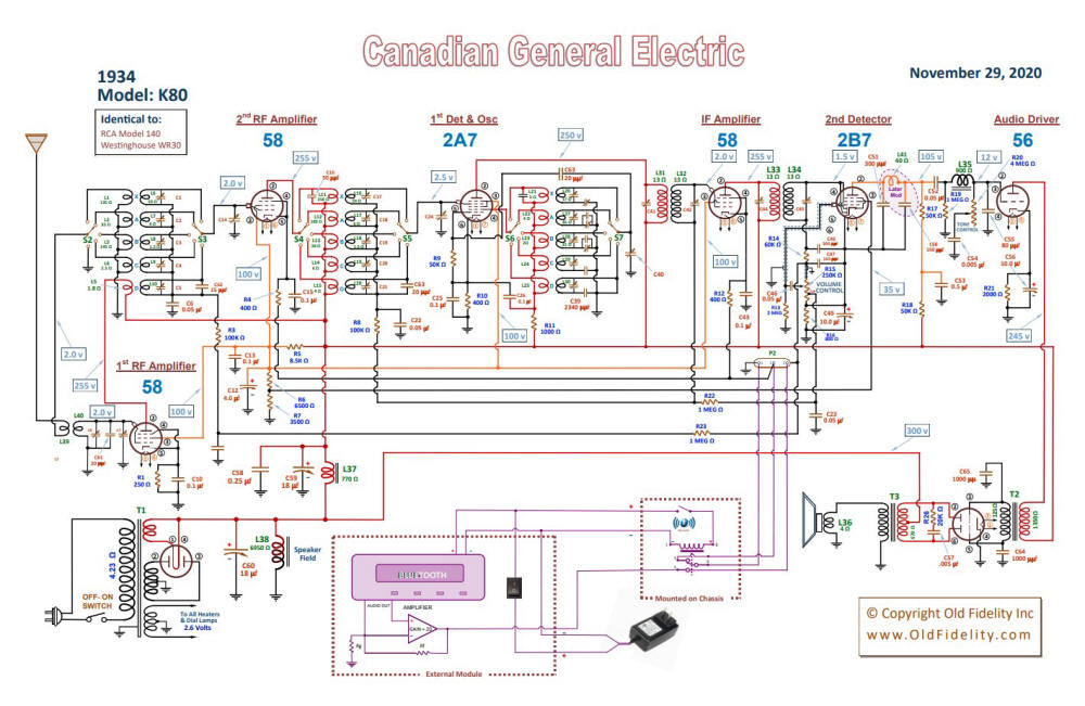 1934 Canadian General Electric Radio Model K80 working Schematic